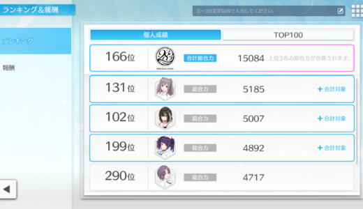 とはいえルカと霧子辺りは自主練ガン回しでも100位以内圏では勝負出来ていたので、自分の手持ちの範囲ではそんなに悪い選択肢ではなかったのかなと。