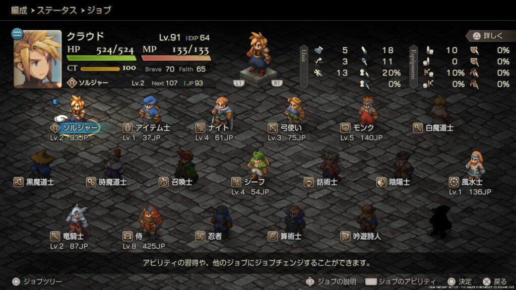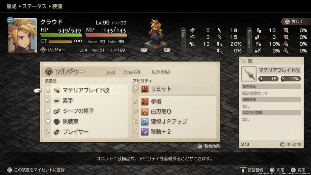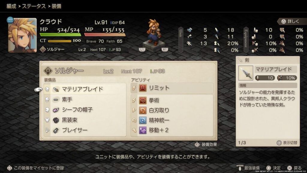 【ファイナルファンタジータクティクス – イヴァリース クロニクルズ】クラウド加入! ちゃんと調整で強化されている