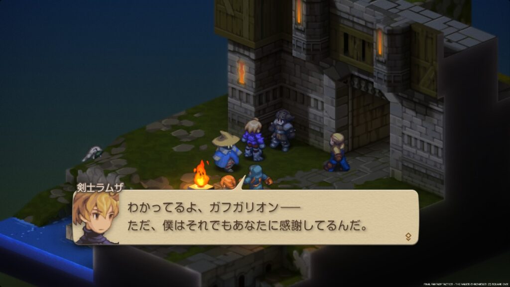 元々ラムザとガフガリオンの関係性はガフガリオン側が何かラムザという存在に期待しているようなウェットさがあって、でも現実という物を知っているドライさもある。