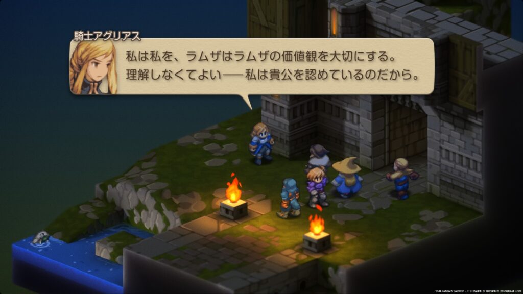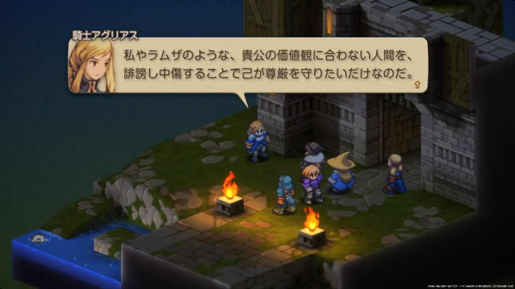 こんな感じでライオネル城でのラムザは勿論アグリアスとの会話まで増えている。