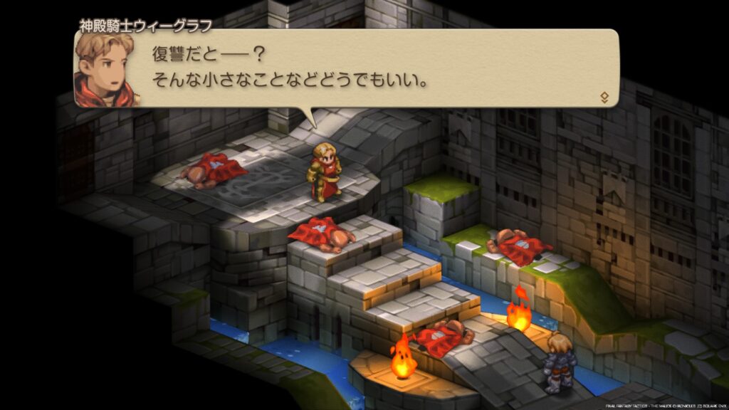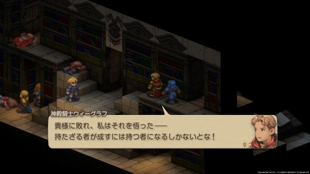 同じように妹を失ってもディリータの行動を見ても感情を押し殺しながら大局を見て進みますが、ウィーグラフはその器ではなく感情的な部分が強いですもん。