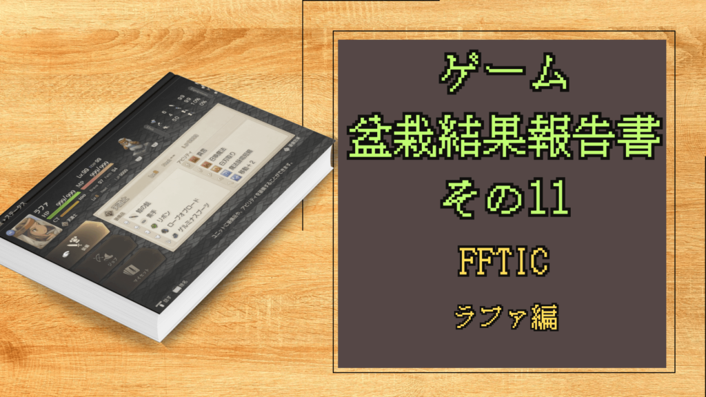 前回のアグリアスを終えて、盆栽終了したキャラはラファ。