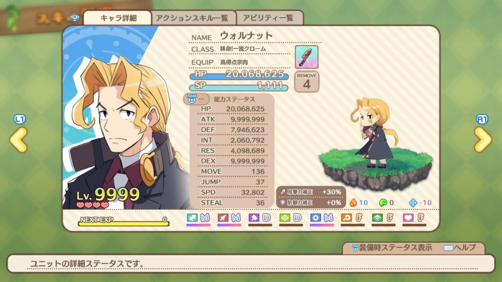 | 能力ステータス | 装備率 | 装備ステータス | |