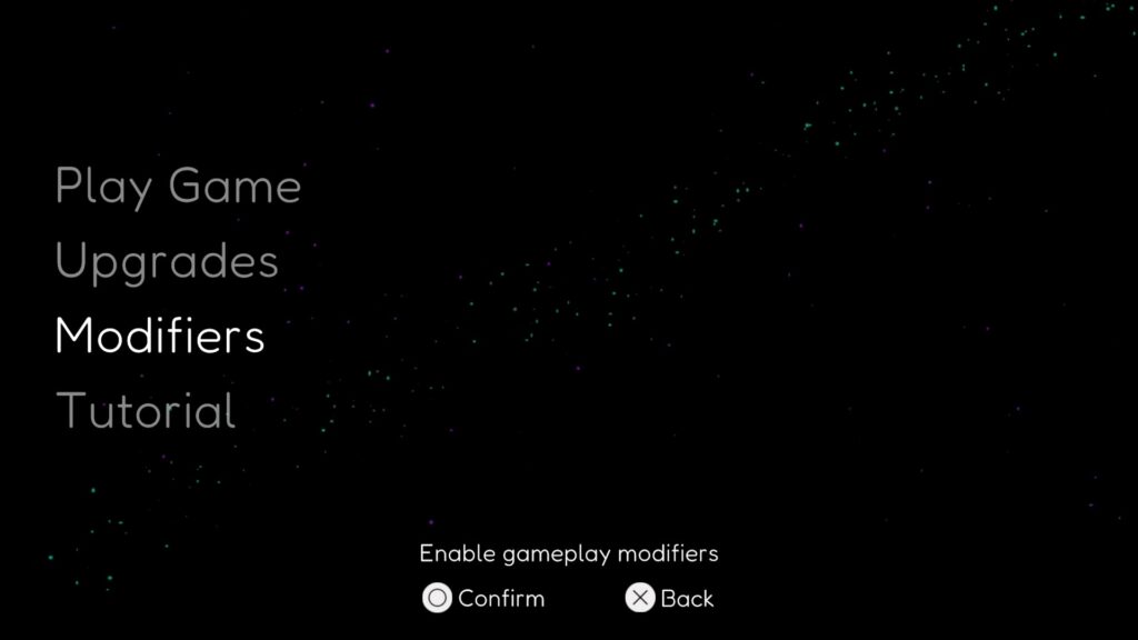 ただ普通であれば放置したらダメージを受けてゲームオーバーになってしまうが、メインメニューにあるModifiersを選択して、Invicibilityの項目をONにすると自機が無敵になることが可能。