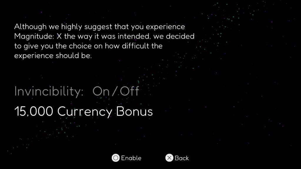 全ステージをクリアしたら再びModifiersを選択。するとクリア前にはONに出来なかったもう1つの項目である15.000 Currency Bonusを解除出来るようになっている。