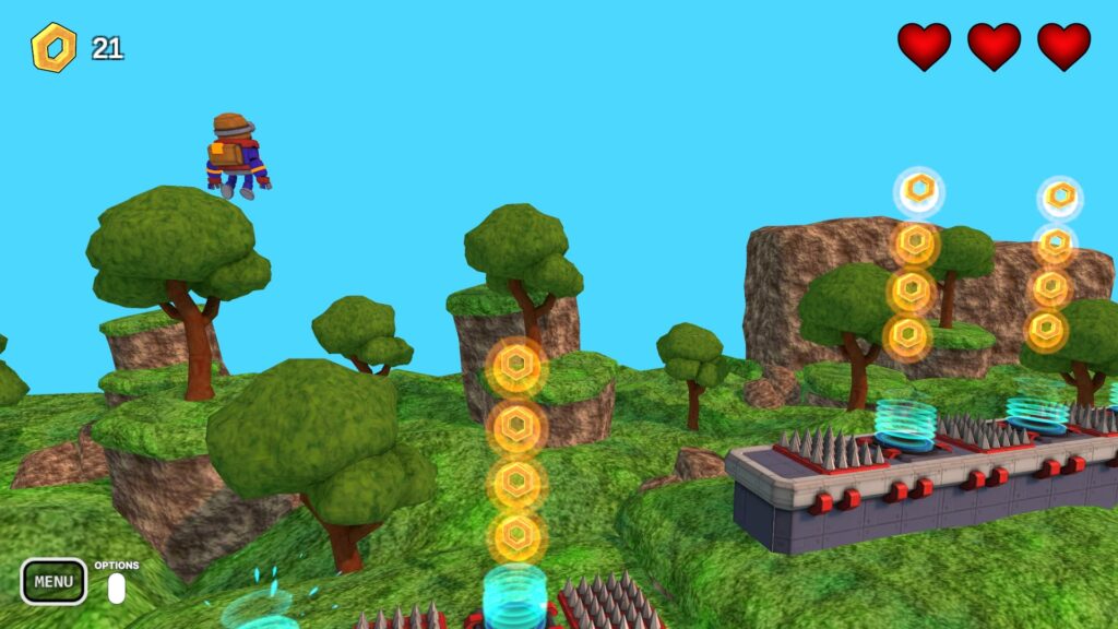Robo Hop は、溶岩の穴、浮島、トリッキーな障害物に満ちた鮮やかな世界を探索する、勇敢な小型ロボットを操作するペースの速い3Dプラットフォーマーです。ジャンプして回避し、光るギアを集めながら、浮遊する敵と戦い、精密なプラットフォームの課題をマスターしましょう。