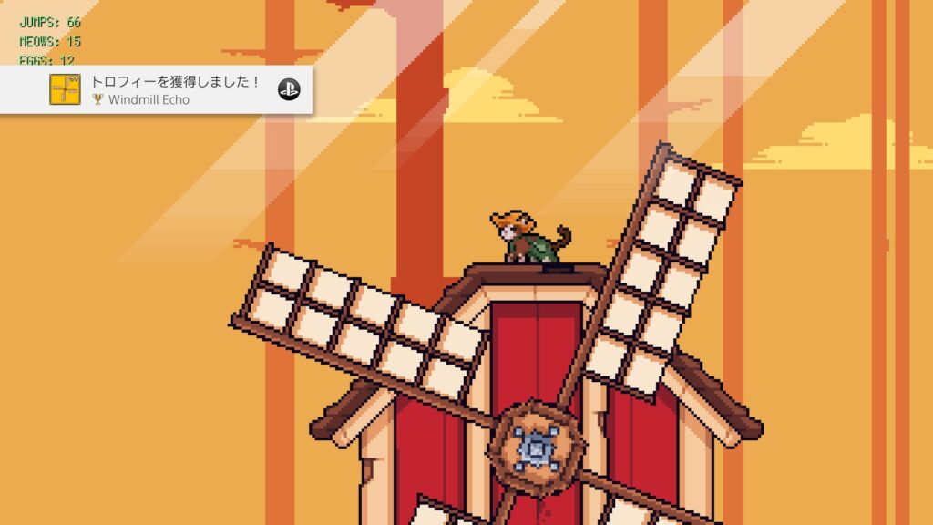 風車小屋になった時点でもう片方のトロフィーが手に入るので油断しがちなのでちゃんと鳴くことを忘れないようにしよう。