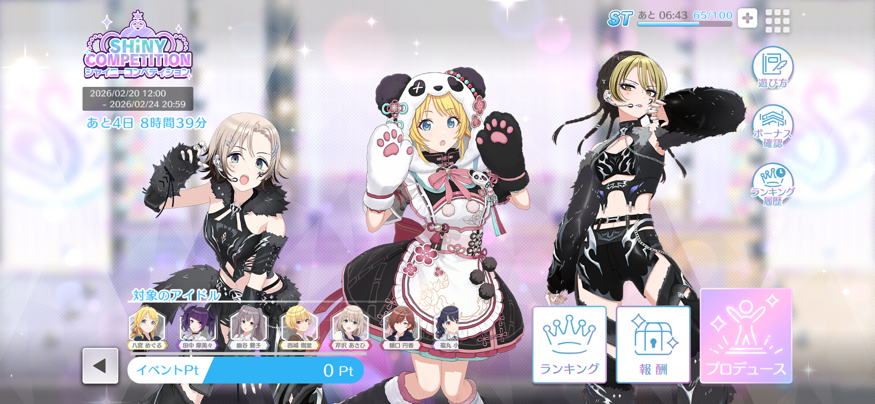 めぐる連続もきついですが、それ以上に9人という人数がきつい。今月のシャイニーコンペティションはシンプルに作業量が多くなるので、ある程度妥協するアイドルも決めておいた方がいいかもしれません。