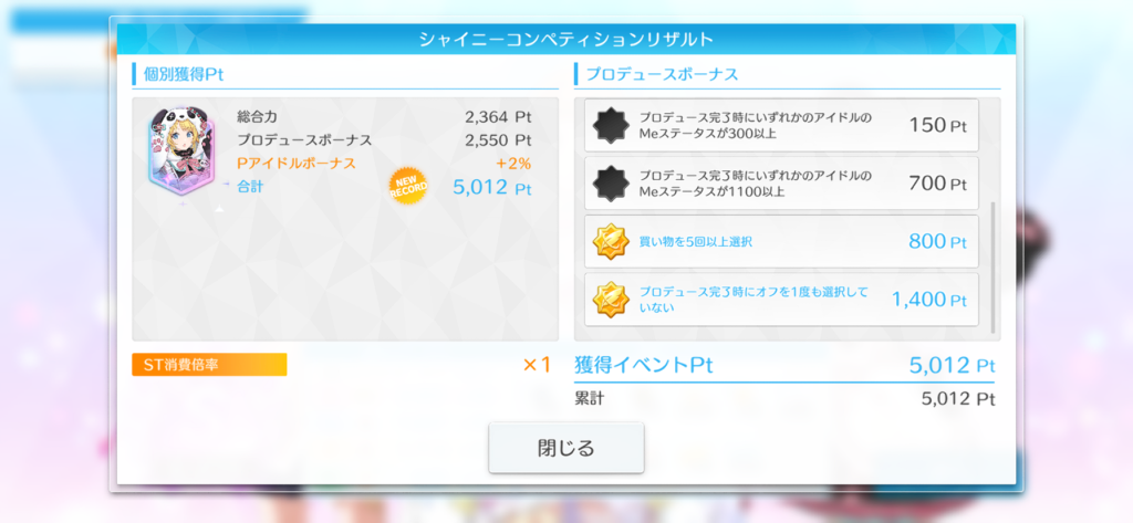 - プロデュース完了時にオフを1度も選択していない 1400Pt