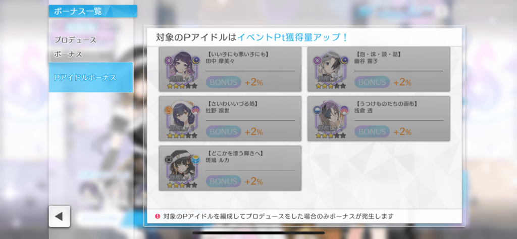 ただアイドル所持よりも重要となるのはボーナスの内容。今月はこんな感じです。