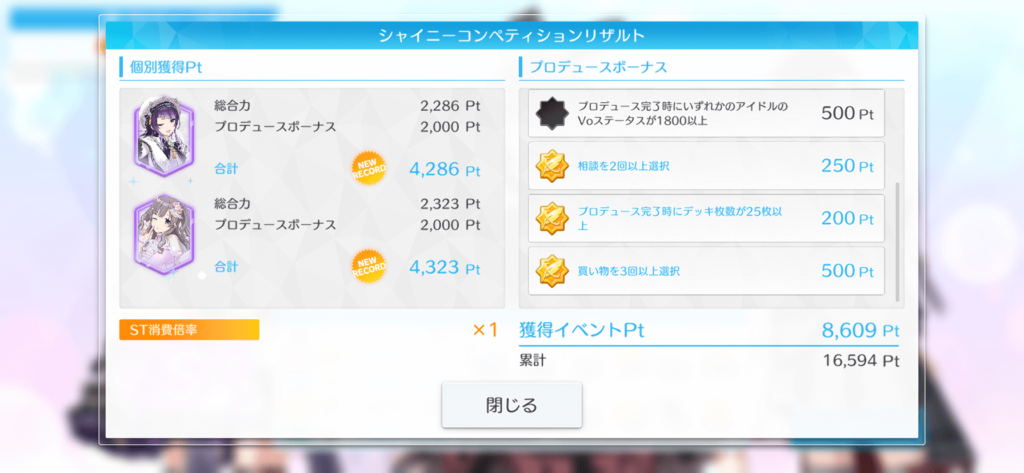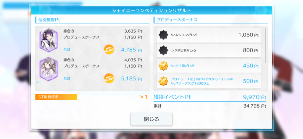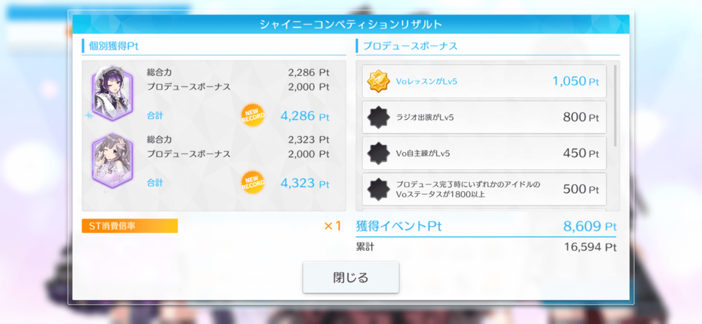 これがラジオ出演で満たせる状態なら更に350Ptの上乗せも視野に入るので、相変わらず安定して高スコアを出せるルートですね。