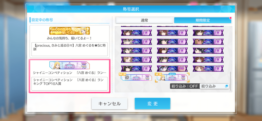 そして摩美々と樹里とあさひと小糸は全員50位以内か100位以内。これは今回のルート的に達成すればほぼ確定だったので狙いやすい彼女達は狙って取りに行きました。