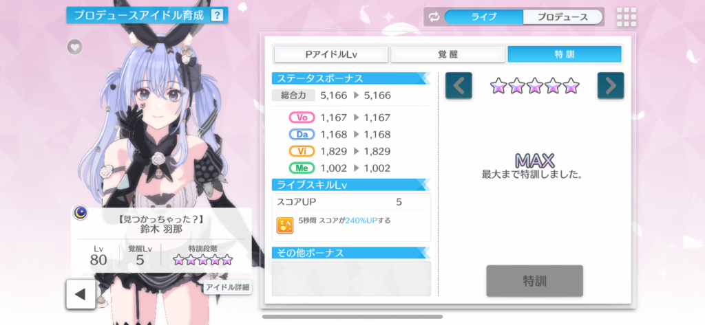 純粋なアイドルの総合値よりも如何にボーナスを確保しながら、総合値も確保するか、ここからゲーム性が上がり、それと同時に確率にムキーっとする機会も増えることに。