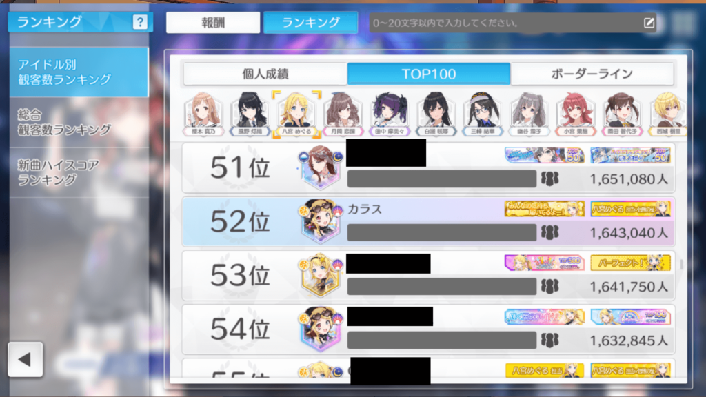 自分は今めぐるの100位以内を目標に走り続け、今はこの位置。