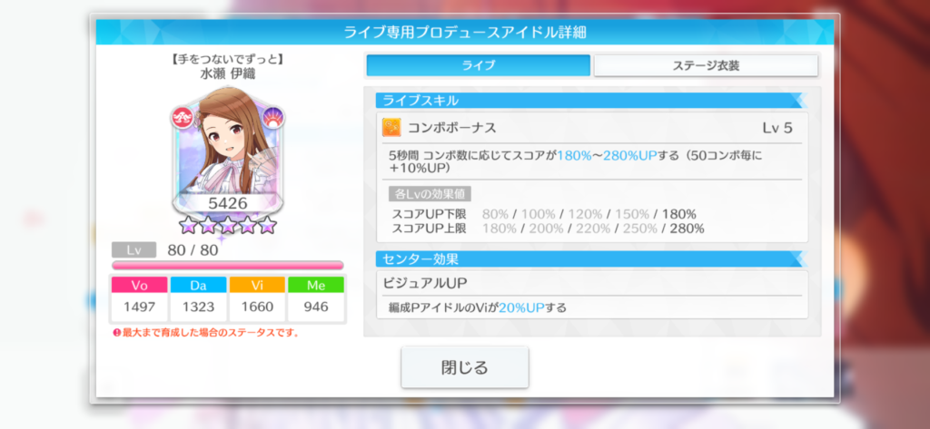 楽曲によってはパーフェクトスコアUP超えもするので普段使いもしやすい方で優秀。
