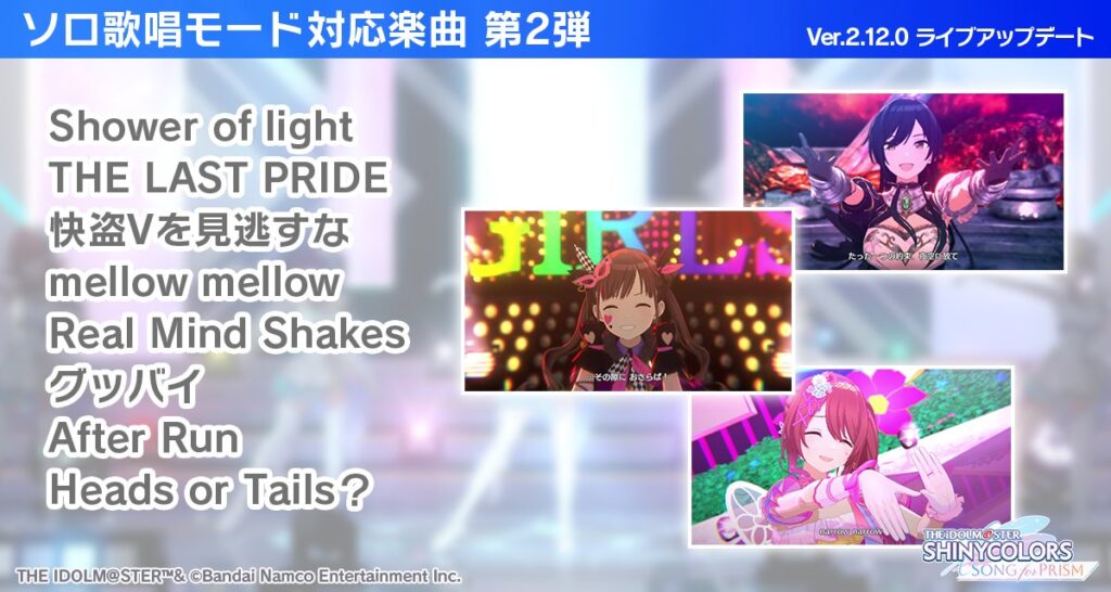 ソロ歌唱追加とは違いこちらは今回全体曲とリフラクションズ中心の追加となっていますね。