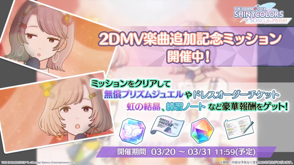 楽曲追加に合わせて2DMVミッションも開催されています。