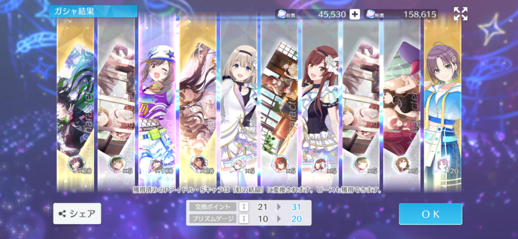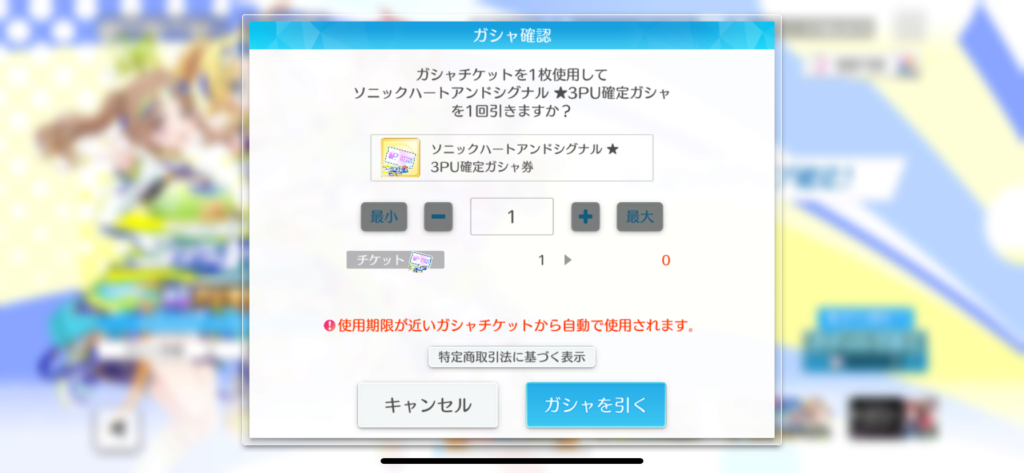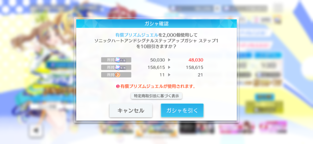 こんな感じでめぐるに限らず、引き得なガシャになっている今回。当然めぐる確保のためにガシャへと挑ませてもらいます。