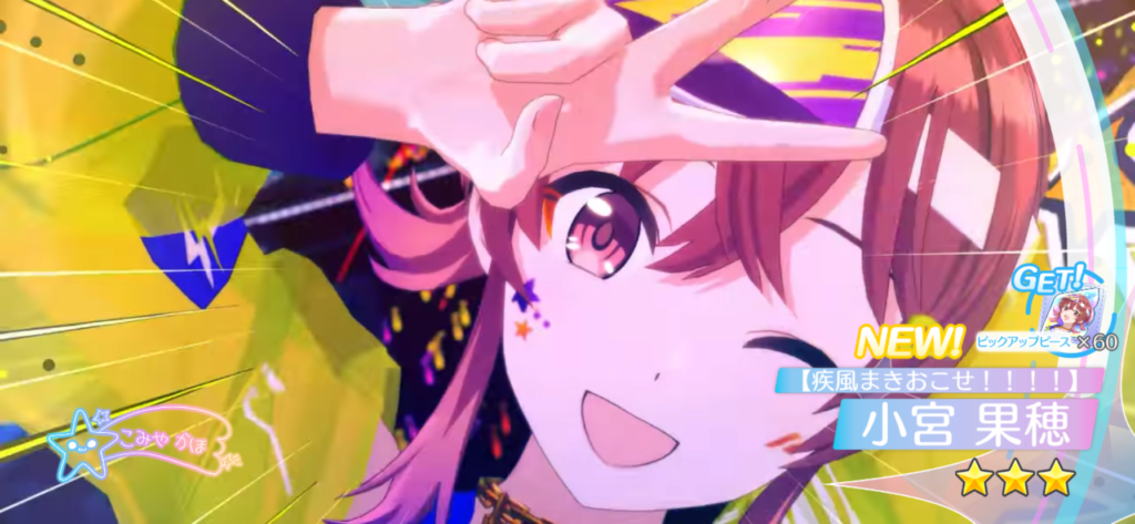 めぐるはロングスコアUPなので限定的な使い所とはいえ、ここからしばらくはこのスキルが刺さる楽曲でハイスコア目指せるところでは必須級になるでしょうし(アイキュー羽那と被ったのは個人的には打撃ではありますが)、果穂に関してはパーフェクトスコアUP持ち、これはもう使い所しかありません。