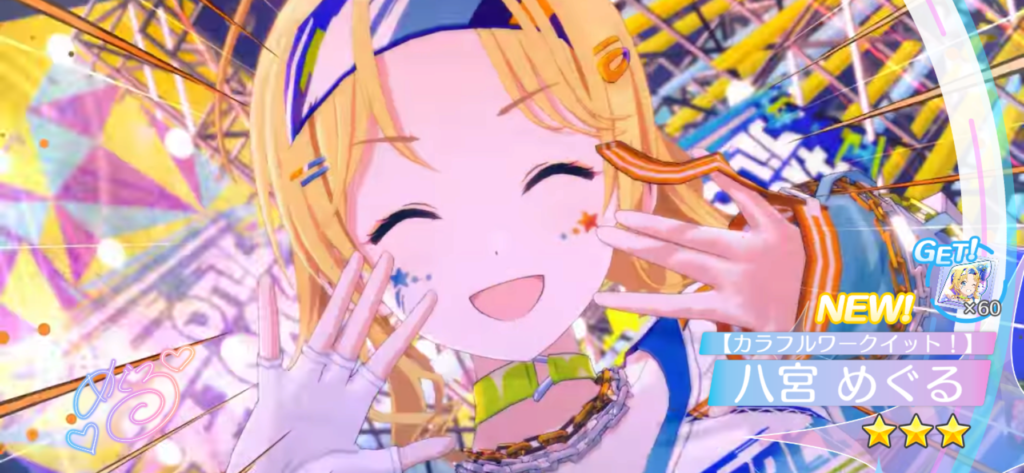 …くだらない前置きはここまでにして、ついに新しいめぐるが来ましたね。しかもここまで貯めたご褒美かのようにPJ: REFRAC7IONSの新ユニットのセンターとしてですよ。
