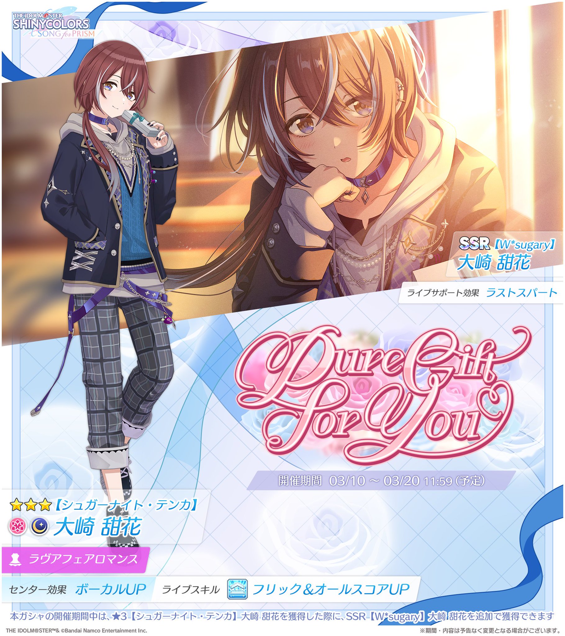 ライブ面ではレアなフリック&オールスコアUPなので、恒常とはいえステータス補正が貰える楽曲なら限定は上回れる性能、リフラクションズでもまだにちかしか持ってきていないので、その楽曲では優秀。